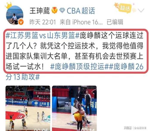 加时赛最后时刻,山东队想犯规,但“野球王”庞峥麟,持球从后场连过7人,带球进入前场山东队才拦住他。赛媒体人王珅葳在社媒发文写道:庞峥麟这个运球连过了几个人?就凭这个控运技术,我觉得他值得进国家队集训大名单,甚至有机会去世预赛上场试一试水!